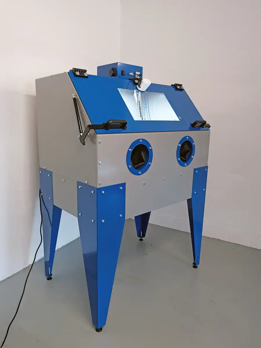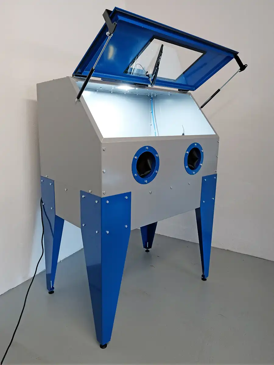 Saubere Arbeitsumgebung: Gehäuse und Handschuhöffnungen halten Spritzwasser zurück; LED erleichtert die Sicht.