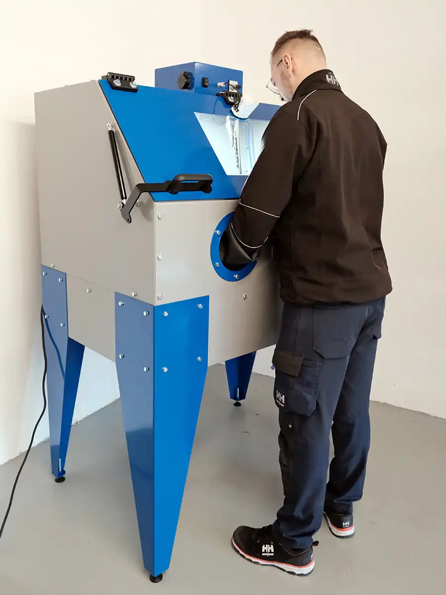 Vor der Reinigung grobe Verschmutzungen entfernen, Teile sicher einlegen und mit moderatem Druck anstrahlen. Beim Einsatz von Heisswasser stets Handschuhe verwenden und die LED-Ausleuchtung nutzen, um die Strahlführung zu kontrollieren. Reinigungsmittel nur gemäss Herstellerangaben dosieren; Materialien auf Verträglichkeit prüfen.