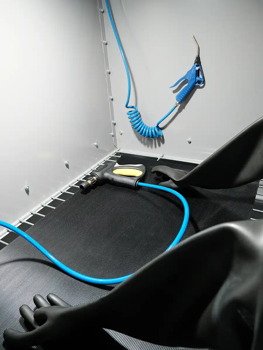 Lieferumfang: 1 Reinigungsbox, inkl. Hochdruck- und Luftpistole, LED-Beleuchtung und montierte Handschuhe